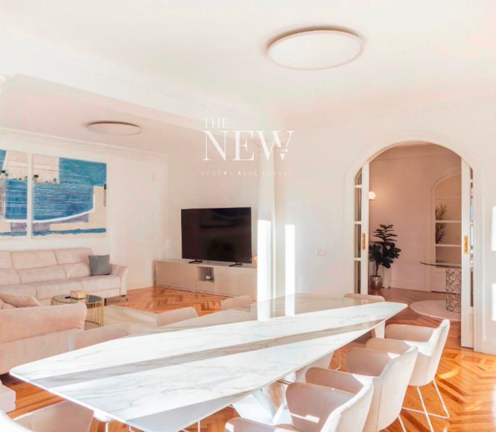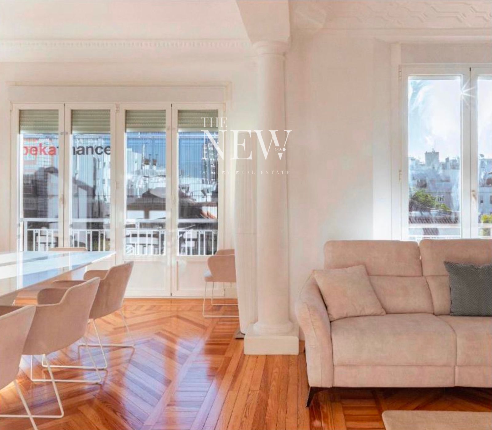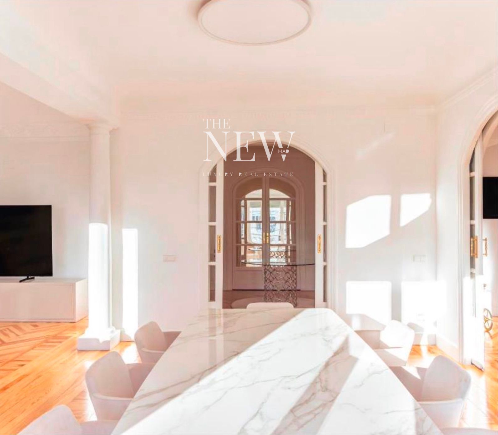 The New Madrid presents a 336 m² residence on the prestigious Calle Serrano, located on the sixth floor of a classic building that embodies the timeless elegance of the Salamanca district.