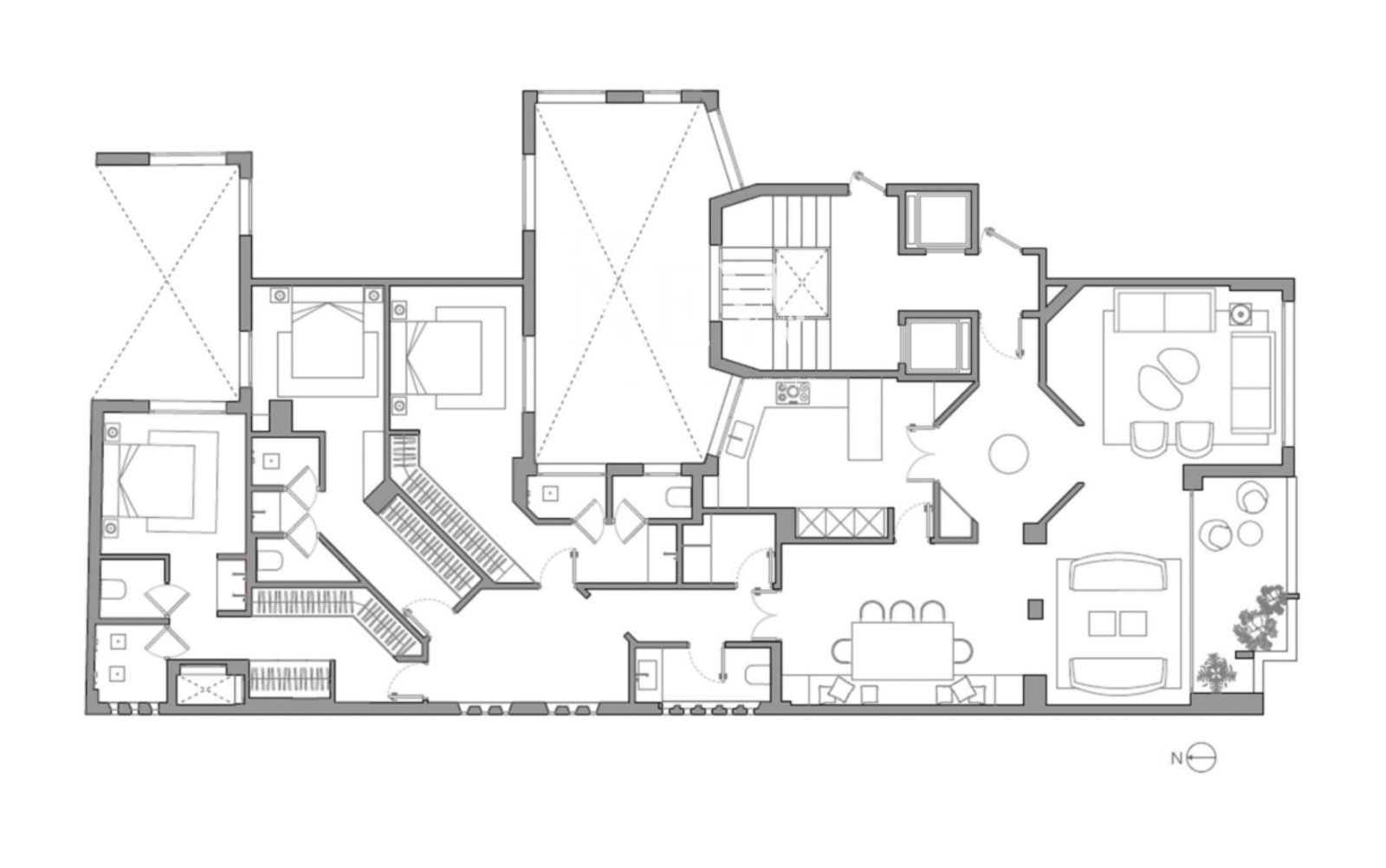 Con 205 m², cuenta con tres dormitorios en suite, tres baños completos y un aseo de cortesía, calefacción y agua caliente central, aire acondicionado por conductos y orientación sur, ofreciendo luz natural durante todo el día. La propiedad es totalmente exterior y dispone de terraza cubierta con vistas a Lagasca 99, ideal para disfrutar de Madrid desde la comodidad del hogar.