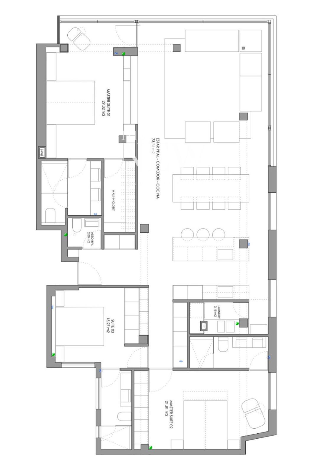 La vivienda ofrece una distribución cuidada y funcional, con 3 dormitorios en suite y un aseo de cortesía, combinando diseño contemporáneo, confort y materiales de alta calidad.