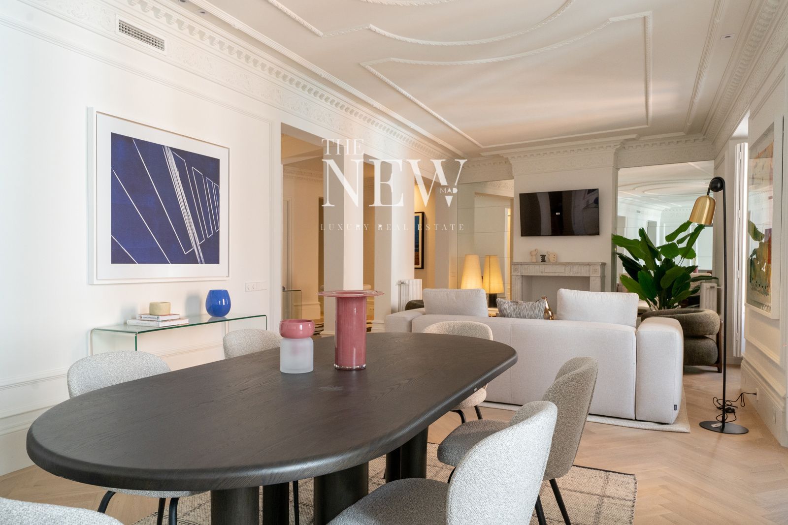 The New Madrid presenta esta exclusiva vivienda reformada de 298 m² en María de Molina. Situada en una cuarta planta con portero, ofrece 4 dormitorios, 4 baños, aseo, trastero y parking.