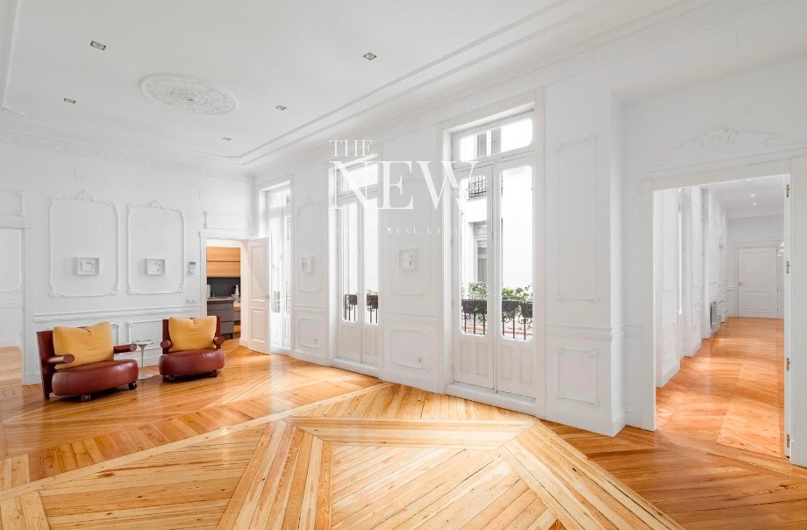 The New Madrid te presenta esta extraordinaria propiedad de 423 m² situada en la calle Valenzuela, en una finca señorial protegida de 1915 que constituye una de las joyas más exclusivas del barrio de los Jerónimos. La vivienda destaca por la majestuosidad de sus espacios, con techos que superan los tres metros y medio de altura, una característica difícil de encontrar que combina el encanto centenario con el confort contemporáneo.