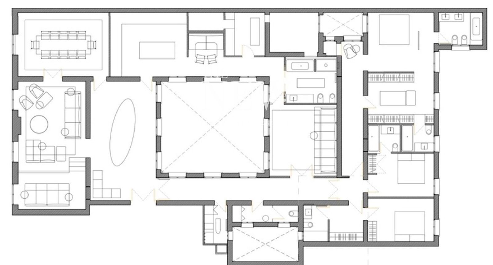 El diseño de la casa gira en torno a un luminoso patio central que actúa como eje vertebrador, aportando claridad y serenidad a todas las estancias. La distribución conecta fluidamente las zonas de recibo con varios salones y un comedor, manteniendo el carácter noble gracias a sus balcones de suelo a techo y detalles originales recuperados. Dispone de 5 dormitorios y 6 baños, ofreciendo gran amplitud. Además, existe la opción de adquirir un estudio recién renovado en la misma finca, ideal como despacho, zona de invitados o vivienda de servicio. Vivir aquí es disfrutar de un auténtico lujo junto al Parque del Retiro.